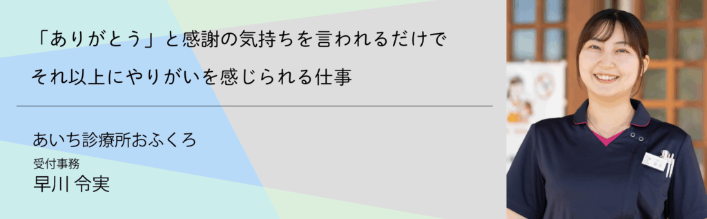 そういう言葉をかけられた時に、あぁ私もあいち診療所の一員になれたのかなぁと